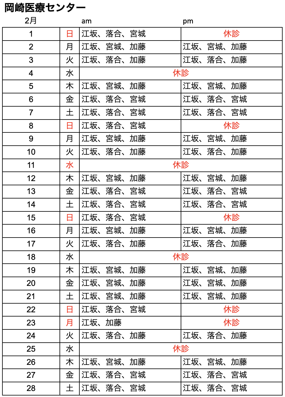 ※診察時間終了20分前には呼び出しがなくとも近くでお待ち下さいますようよろしくお願いいたします。